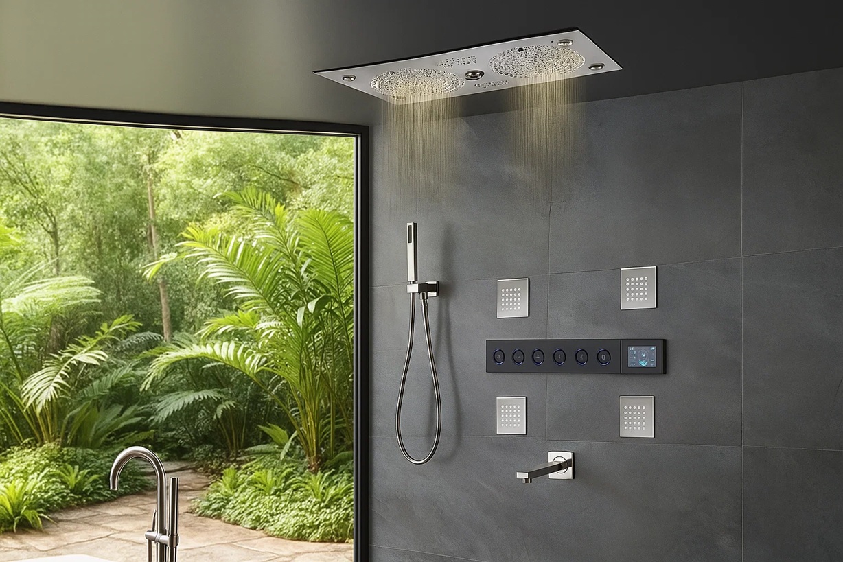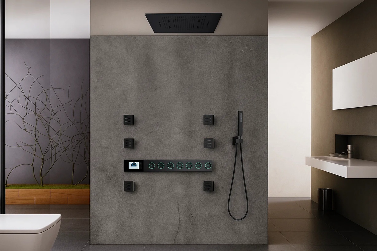 Digital Control & Connectivity: Integrated motion sensor delivers touchless activation. Controls include a digital display for real-time temperature and flow, plus app-based (Tuya) and voice control for seamless user autonomy.