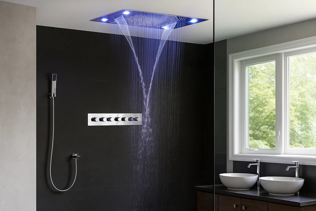 Ambient LED Lighting for Elevated Ambiance: Four integrated LED lights located in each corner of the shower head create an immersive, high-end visual effect—perfect for mood lighting in upscale hospitality or premium residential settings.