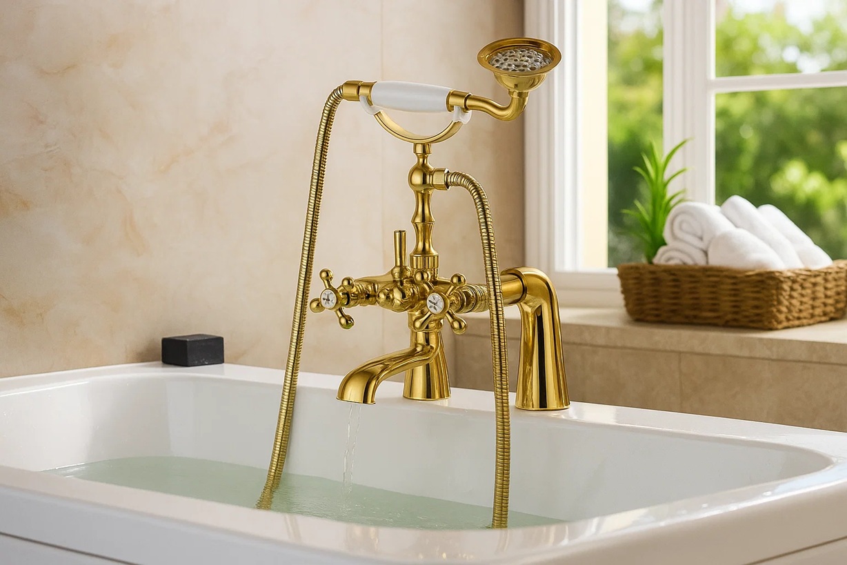 Luxurious Gold Finish & Deck-Mount Design: The faucet features a sleek, contemporary aesthetic with a polished gold electroplated coating. Its deck-mounting enhances sink area aesthetics and conceals plumbing for a streamlined look